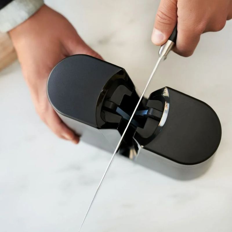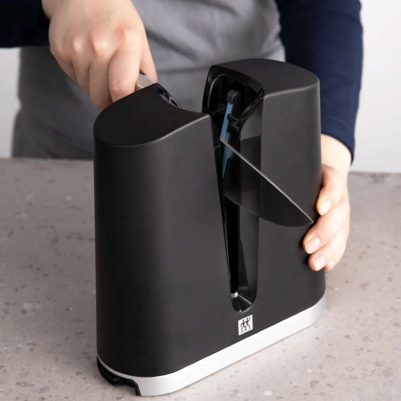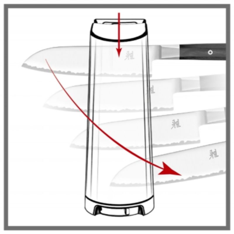 Любой, кто когда-либо готовил по-настоящему острым ножом, знает, как приятно обращаться с ним. Но даже самое лучшее лезвие со временем теряет свою остроту. Регулярная заточка имеет решающее значение для поддержания качества в долгосрочной перспективе. Но прежде чем вы сразу же возьмете свой точильный камень и часами будете искать в Интернете инструкции о том, как правильно затачивать ножи, пожалуйста, обратите внимание на эту великолепную точилку ZWILLING V-Edge. Его запатентованный механизм заточки чрезвычайно прост и абсолютно эффективен: лезвие ножа нужно просто протянуть по диагонали сверху вниз — V-Edge сделает все остальное. Керамические шлифовальные полоски, расположенные V-образно, равномерно шлифуют все лезвие без риска его повреждения. Есть сменные угловые адаптеры для европейских и японских ножей. Неиспользуемый адаптер можно хранить прямо в нижней части V-Edge для экономии места.