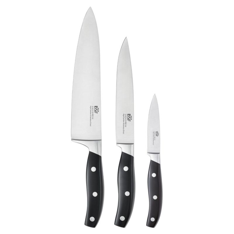 Этот набор из 3 ножей из серии Daytona от BSF идеально подходит для выполнения широкого круга задач на кухне. Большим преимуществом ножей этой серии является качественная пластиковая рукоятка - она имеет эргономичную форму, поэтому ножи отлично лежат в руке.