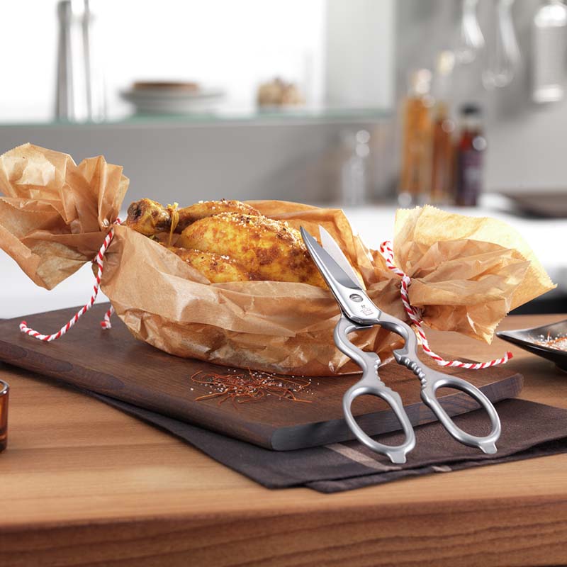 Оригинальные ножницы KUCHENHILFE от Zwilling обладают множеством достоинств. Они сделаны вручную из специальной высококачественной стали. Они режут траву, цветы, бумагу и картон, а также открывают бутылки и резьбовые крышки. Неизменны по своей форме и функциям уже более 75 лет.