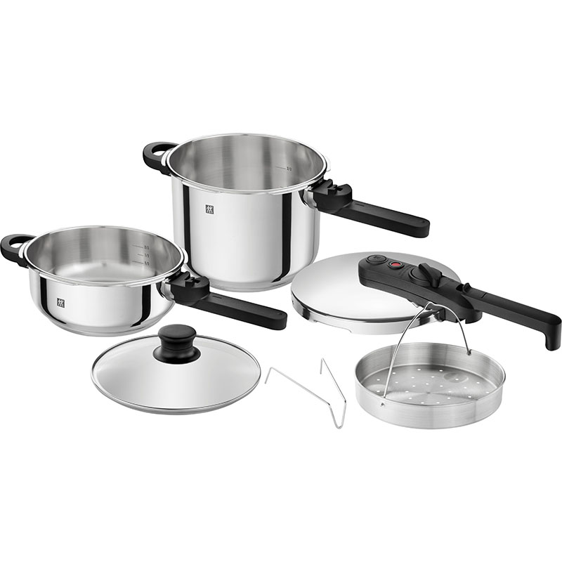 ZWILLING EcoQuick представляет скороварки последнего поколения: привлекательные, прочные, удобные и подходящие для всех типов плит. Кастрюля и крышка изготовлены из полированной нержавеющей стали 18/10, устойчивой к царапинам, а ручки - из термостойкого пластика. Сэндвич-основа SIGMA Classic с алюминиевым сердечником гарантирует отличное удержание и ультра равномерное распределение тепла.