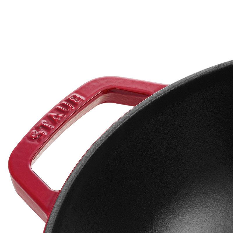 Сковорода-вок от STAUB позволяет создавать оригинальные рецепты из рыбы, мяса, тофу или овощей: ингредиенты готовятся особенно быстро, потому что при постоянном перемешивании они соприкасаются с раскаленным чугуном со всех сторон. При таком способе приготовления овощи остаются особенно хрустящими, и в то же время блюда содержат больше питательных веществ и витаминов, чем при обычном приготовлении в кастрюле. В дополнение к рисовой лапше или овощным жареным блюдам, без особых усилий можно приготовить или разогреть гарниры.