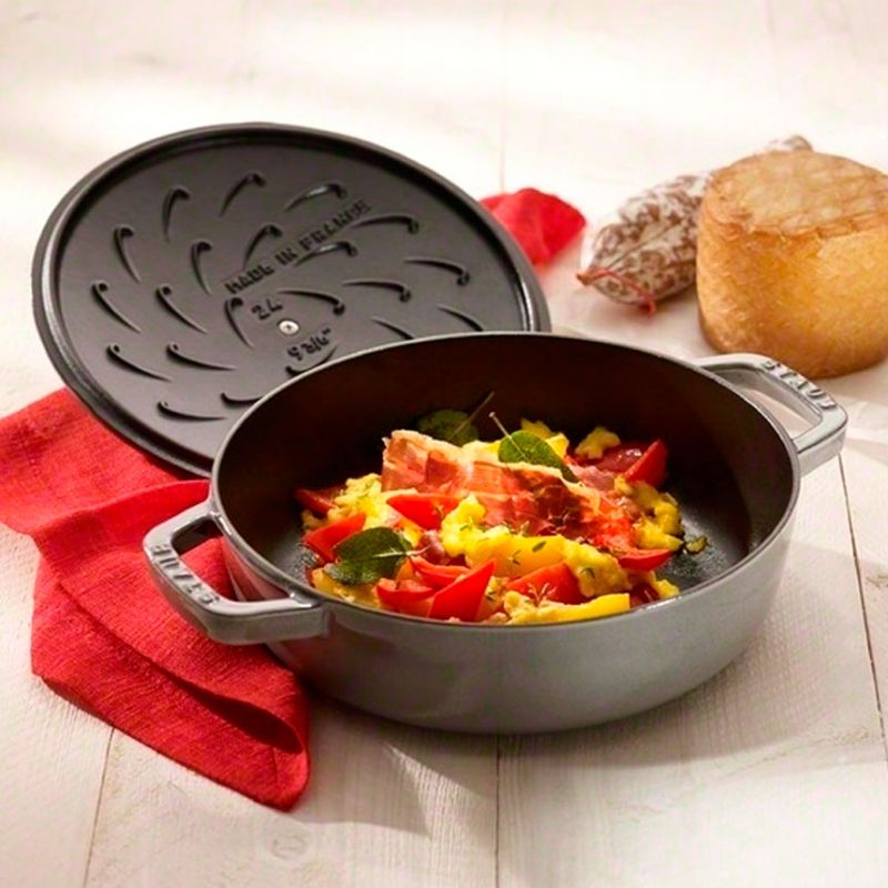 Эта сковорода-сотейник отлично подходит для приготовления блюд, которые нуждаются в длительном тушении - фаршированный перец, классические голубцы, средиземноморский рататуй. Крышка имеет особую структуру и удерживает конденсат внутри сковороды, поэтому все приготовленные блюда будут ароматными, полными питательных веществ и с низким содержанием калорий.