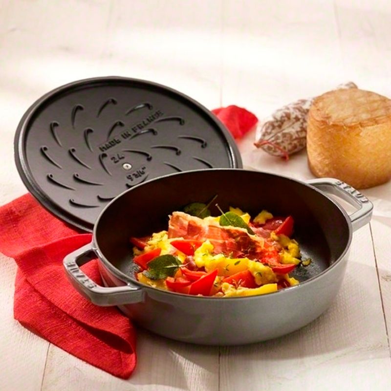 Эта сковорода-сотейник отлично подходит для приготовления блюд, которые нуждаются в длительном тушении - фаршированный перец, классические голубцы, средиземноморский рататуй. Крышка имеет особую структуру и удерживает конденсат внутри сковороды, поэтому все приготовленные блюда будут ароматными, полными питательных веществ и с низким содержанием калорий.