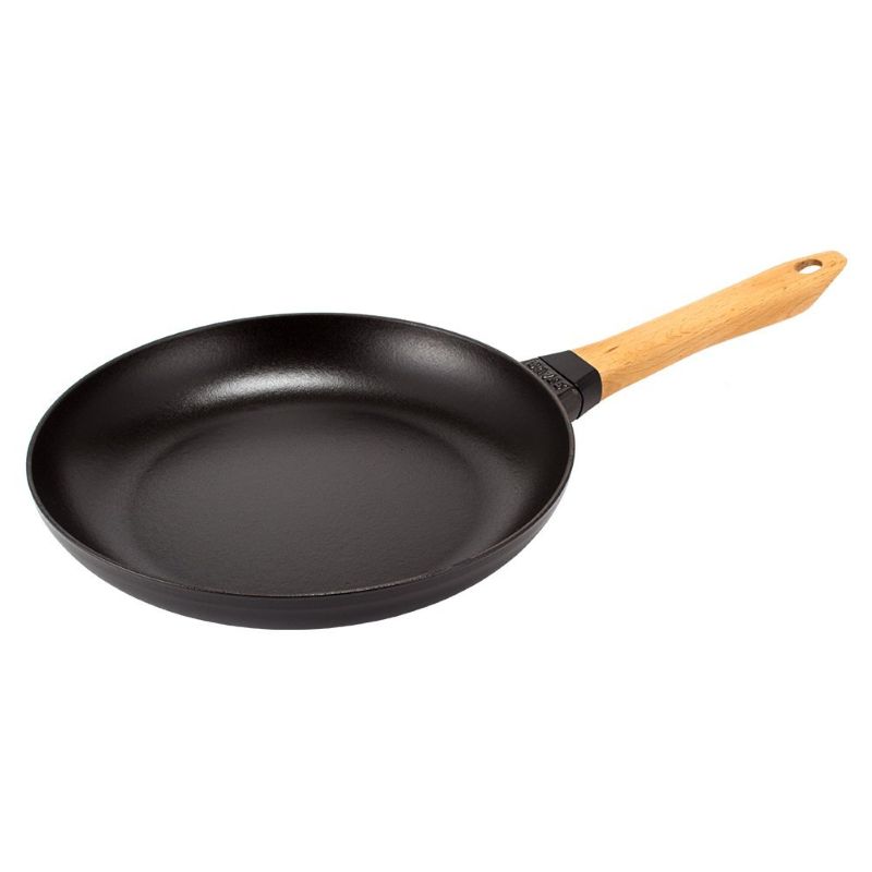 Благодаря этой сковороде вы всегда сможете приготовить вкусные и полезные блюда для всей семьи. Она подойдет как ценителям стейков, так и любителям нежной рыбы и овощей. Корпус сковороды Staub изготовлен из матового черного чугуна. Поверхность слегка шероховатая - это необходимо для сведения к минимуму риска прилипания продуктов и, таким образом, сохранения посуды в чистоте. Еще одним преимуществом этой посуды является равномерное распределение тепла по всей поверхности. Все это означает, что даже любитель сможет приготовить идеальный и вкусный стейк - подрумяненный снаружи и сочный внутри. Рукоятка защищена от внезапного возгорания.
