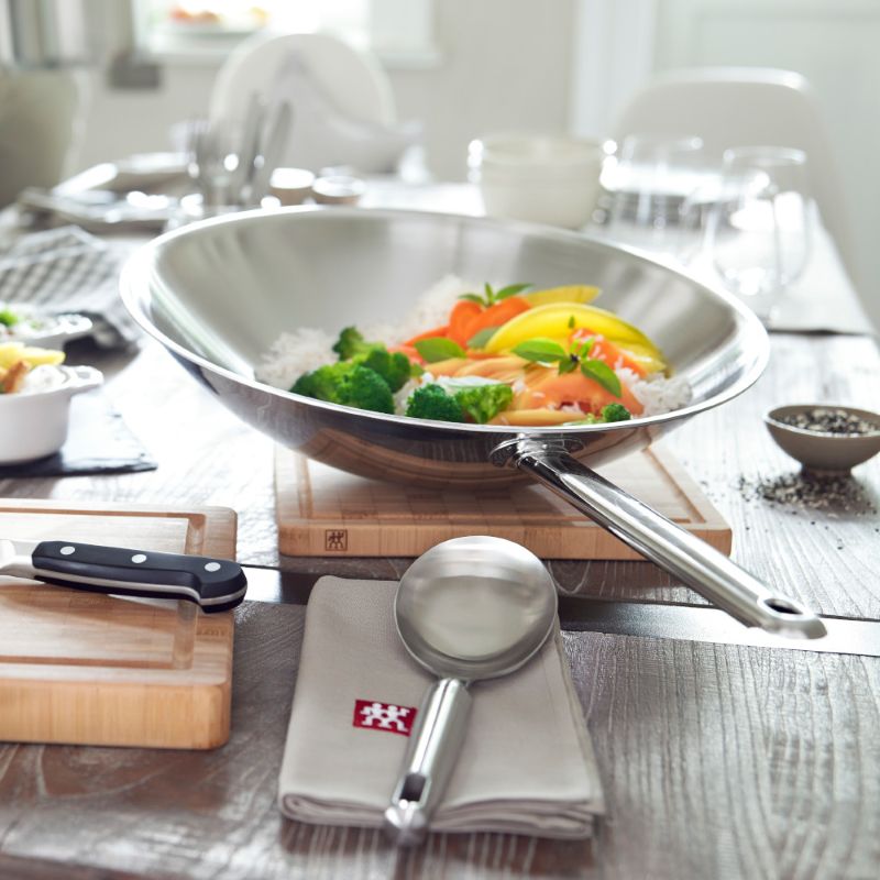 Специфика работы с вок-сковородой состоит в том, чтобы сочетать сильный огонь с постоянным перемешиванием. Но с этой сковородой от Demeyere вы также сможете готовить на пару, тушить и карамелизировать. Вы можете легко приготовить не только аппетитные блюда-вок, но и картофель во фритюре, хрустящие овощи или ароматный гуляш.