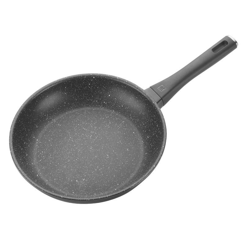 Сковорода ZWILLING диаметром 28 см из серии Marquina Plus - не только практичный помощник на кухне, но и стильный аксессуар с привлекательным дизайном. Высококачественное 4-слойное антипригарное покрытие имеет привлекательный вид гранита и гарантирует бережное приготовление блюд - к нему не прилипают ни яичница, ни блины, ни рисовые, овощные или рыбные блюда. А благодаря эргономичной ручке и функции безопасного охлаждения сковороду всегда удобно и беспечно переносить от плиты к столу.