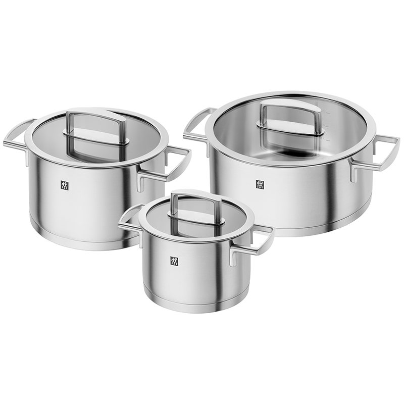 С набором посуды из серии ZWILLING Vitality вы полностью готовы к любым кулинарным вызовам. Сварить суп, приготовить соус, разогреть молоко, потушить мясо – все это легко воплощается в жизнь, если вы счастливый обладатель такой универсальной посуды.Набор состоит из кастрюль разных форм и размеров, которые отлично подходят для варки, тушения, жарки или разогрева уже приготовленной пищи. Этот набор можно использовать на всех типах плит, включая индукционные. Все кастрюли укомплектованы крышками. Они изготовлены из стекла и потому позволяют легко следить за едой в процессе приготовления. Кроме того, крышки оснащены силиконовыми уплотнителями, позволяющими готовить с низким потреблением воды и энергии. Сатиновая поверхность придает посуде элегантный вид. С этим набором посуды из 3 предметов серии ZWILLING Vitality вы можете приготовить вкусные блюда для себя, своей семьи или для встречи с друзьями.