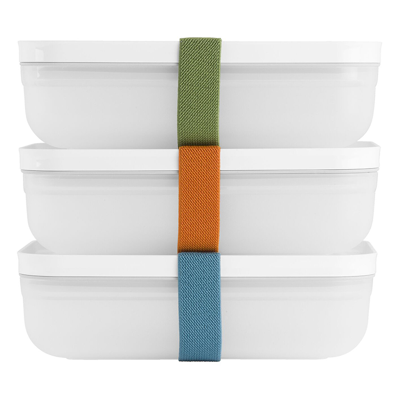 Вакуумные ланч-боксы Fresh & Save - это возможность придерживаться здорового образа жизни, экономить время, ресурсы и выбрасывать меньше продуктов в мусор. Для вашего комфорта боксы разделены на два отдела, благодаря чему вы можете хранить два разных блюда отдельно друг от друга. Также в набор входят ремешки в трех разных цветах, которые защищают от непроизвольного открытия контейнера. Их нужно натянуть вокруг ланч-бокса, и он будет прочно закрыт даже без использования вакуума.