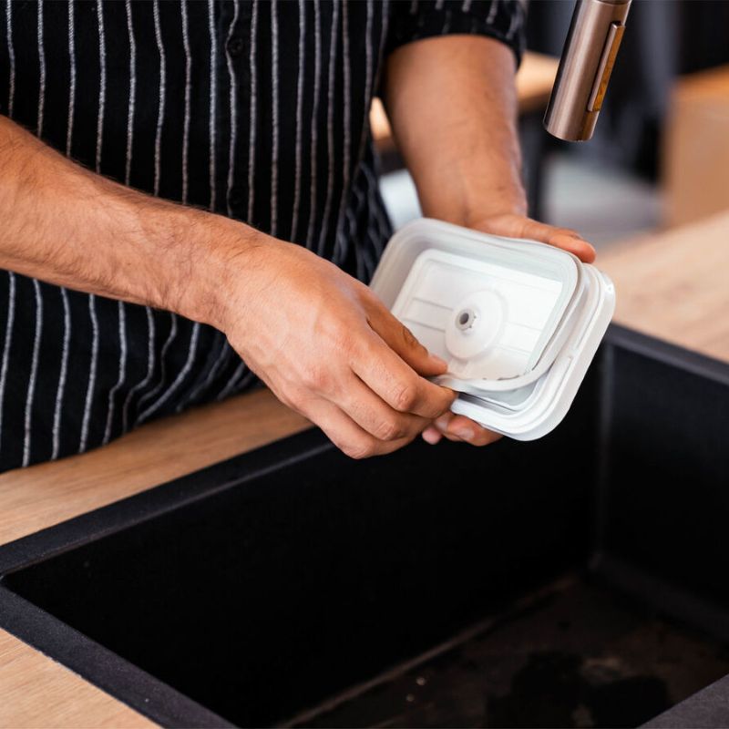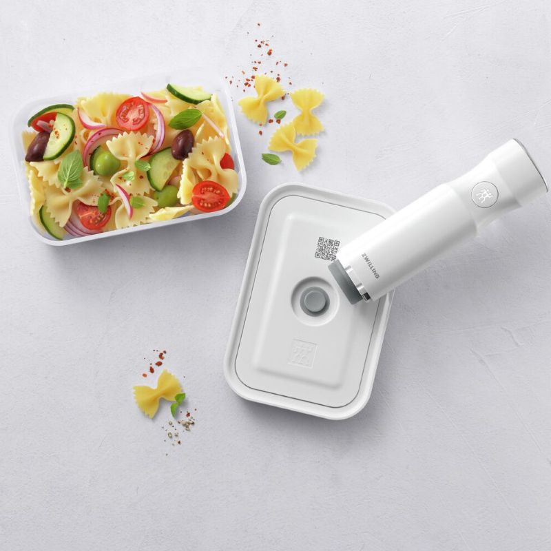 Вакуумный контейнер Fresh & Save - это возможность соблюдать здоровый образ жизни, экономить время и деньги и выбрасывать меньше продуктов в мусор! Как это работает? Просто положите оставшуюся еду в контейнер и с помощью насоса создайте вакуумную среду: установите насос на клапан контейнера - одним нажатием кнопки он удалит воздух за считанные секунды и остановится сам автоматически. В приложении ZWILLING Culinary World вы сможете легко следить за продуктами: просто отсканируйте QR-код на крышке коробки и получайте необходимую информацию - когда придет время израсходовать продукты, приложение автоматически отправит вам напоминание. Вакуумный контейнер устойчивый к замораживанию, подходит для микроволновой печи и посудомоечной машины.