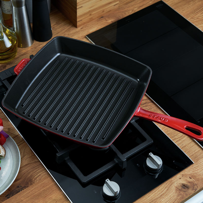 Призначена для смачного і швидкого приготування страв з гриль-ефектом. Завдяки гофрованій поверхні, на сковороді можна смажити м'ясо, рибу та овочі з невеликою кількістю масла або ж зовсім без нього. Сковорода виготовлена з литого чавуну, покрита з зовнішньої і внутрішньої сторони подвійним шаром емалі, завдяки чому сковорода має антипригарні властивості.