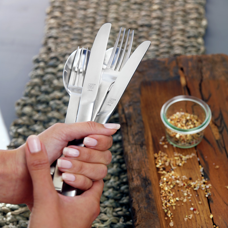 Цей набір складається з ложок, виделок та ножів, які чудово підійдуть як для щоденного прийому їжі, так і для особливих випадків. У комплект також входять чайні / кавові ложечки і виделочки для торта - на випадок приємного чаювання з десертними закусками. З набором із серії ZWILLING Minimale ви зможете накрити святковий стіл просто та елегантно. Столові прибори, створені Маттео Туном та Антоніо Родрігесом, вражають своїм мінімалістичним дизайном. Вони виготовлені з високоякісної нержавіючої сталі - дуже міцний, стійкий до іржі і безпечний для посудомийної машини матеріал. Поверхня матова, із закругленими краями. Набір упакований у фірмову картонну коробку.